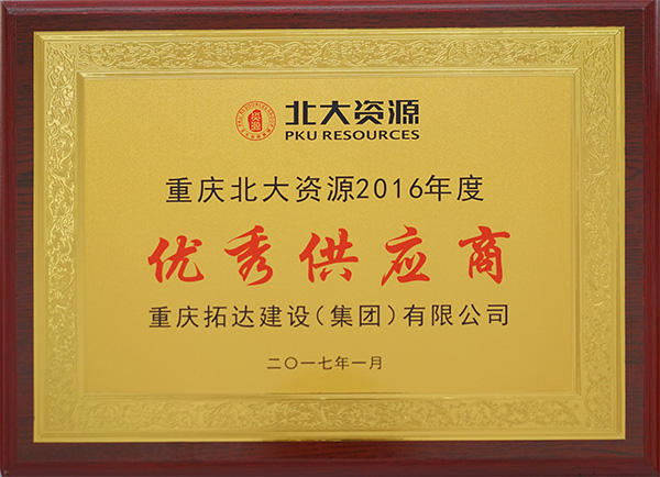 • 重慶北大資源2016年度優(yōu)秀供應(yīng)商